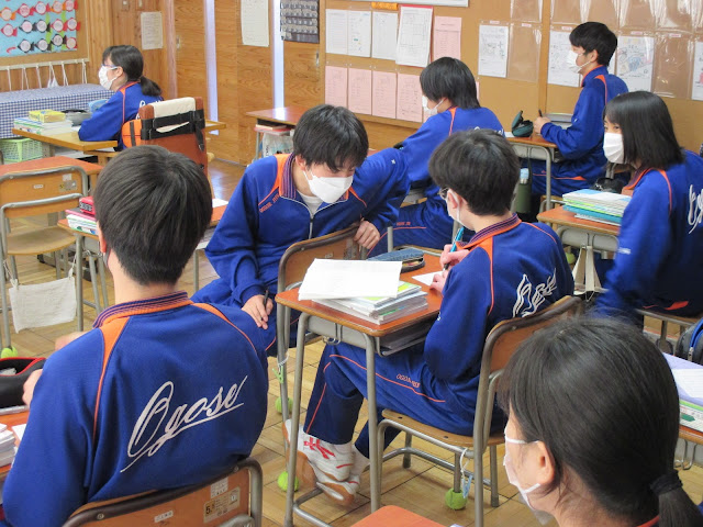 学校では期末テストを終え、1・2年生はそのテスト返しが行われていました。また、入試を終えた3年生はいよいよ卒業式に向けた練習が始まりました。